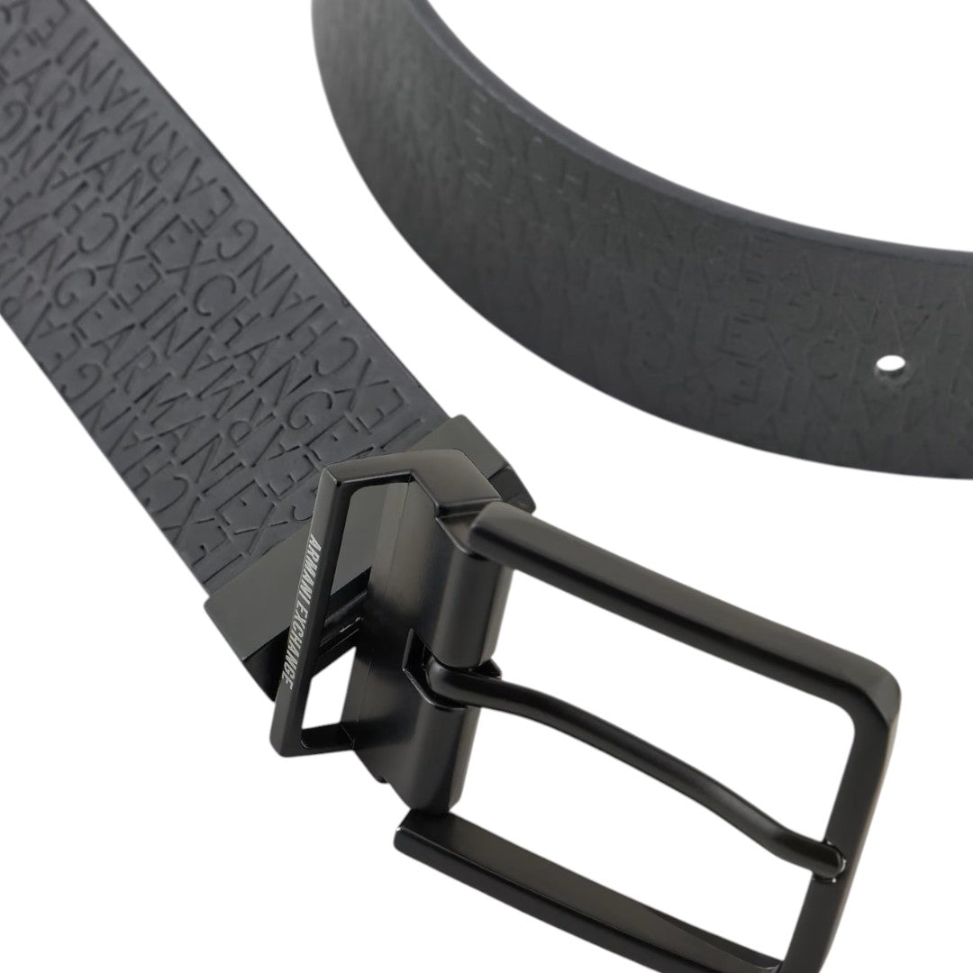 Cintura reversibile realizzata con un lato tinta unito e un lato con logo impresso allover tono su tono. Ardiglione in metallo.