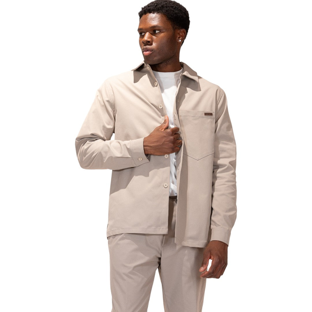 Completo composto da pantalaccio e camicia in gabardine, con una vestibilità comoda ideale per essere pronti in un attimo.