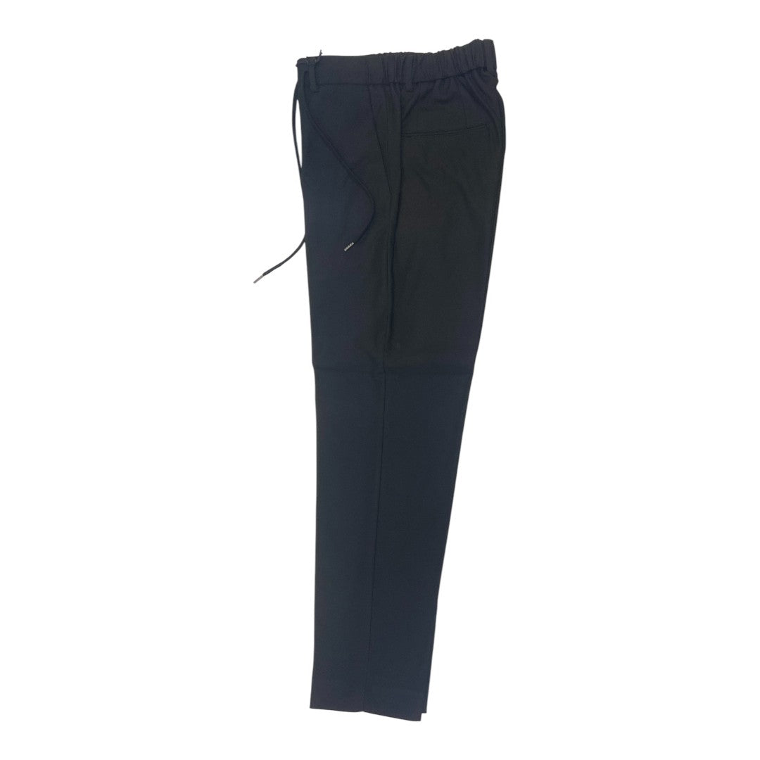 Pantalone da uomo in fresco lana dotato di elastico posteriore sulla cintura e laccio regolabile nascosto sul davanti. La gamba è leggermente più ampia, garantendo una vestibilità ideale che unisce eleganza e comfort sportivo con grande stile.